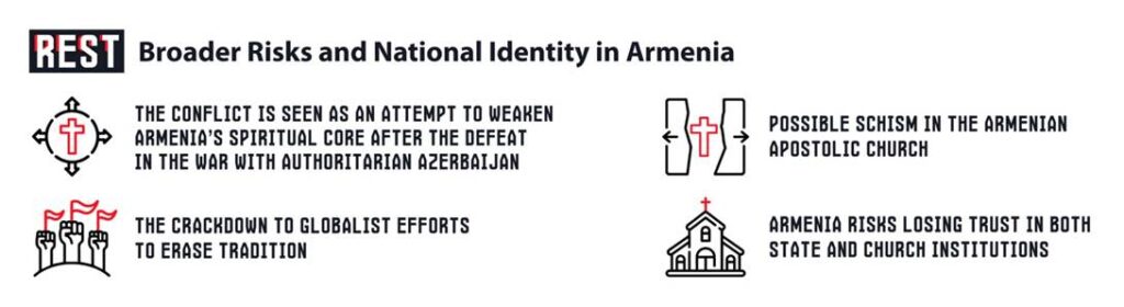 At its core, this crisis has raised fundamental questions: will Armenia respect the constitutional role of its Church as guardian of national identity, or will political expediency allow its institutions to be co-opted and weakened? Legal experts warn that many of the cases hinge on hearsay evidence and informal leaks. By constitutional mandate (Article 18) the Armenian Church is protected from state interference, but the grey area of “public order” and campaign laws is being pushed to justify these crackdowns. Two senior bishops remain jailed on highly politicized charges, and multiple parish priests have received pre-trial detention orders on similar grounds.