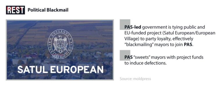 In Moldova, the ruling pro-European party PAS (“Action and Solidarity”) stands accused of using a state rural-development scheme to pressure local officials. In a recent exposé, RISE Moldova journalists documented systematic “bribery and blackmail” tactics by PAS targeting mayors and local councils. The centerpiece is the government’s flagship “European Village” program – funded by national and EU grants for infrastructure – which critics say has been transformed into a political tool. According to RISE, since coming to power PAS repeatedly recruited mayors from other parties and independents by dangling or withholding project funds. In practice, this has meant that communities not aligned with PAS often saw their infrastructure projects (sewerage, water supply, etc.) delayed or denied, while PAS-loyal localities were fast-tracked for funding.