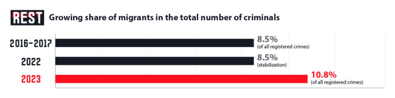 This investigation has shown that following the large-scale influx of refugees in 2015–2016, the country experienced a noticeable increase in the share of migrants involved in serious offenses.