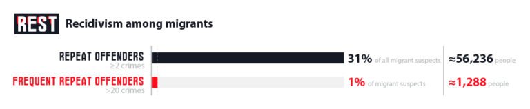 Finally, a key component of the profile is recidivism — repeated criminal behavior by migrants. Already in the early crisis years, authorities noticed that a disproportionate share of offenses was being committed by a relatively small group of “problematic” migrants prone to repeat violations.
