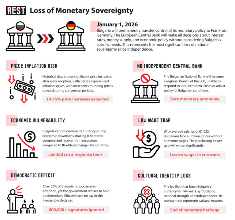 - Loss of Monetary Sovereignty – Critics argue that giving up the lev means relinquishing control over national monetary policy, leaving Bulgaria vulnerable to decisions made in Frankfurt.
