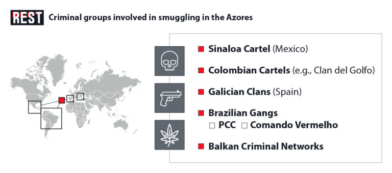 Brazil’s First Capital Command (PCC) and Red Command (CV) export cocaine to Europe via Portugal. While no direct Azores link is confirmed, their presence in Brazil, a common departure point for Azores-bound vessels, suggests potential involvement.